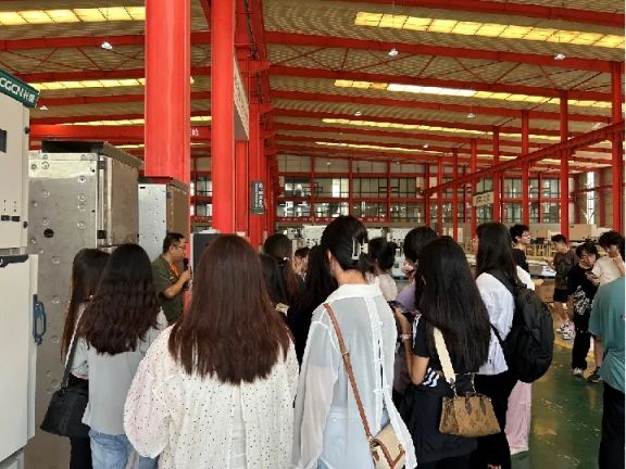 一踏入生产车间,精密的机械设备、流畅的生产线以及工人们专注的身影,即刻将团队成员带入了电气科技的神秘殿堂。在这里,实践团队与山财学子不仅亲眼见证了组装式箱式变电器、高低压电气开关柜及高低压电气元器件设备的精湛工艺,更在专业人士的悉心讲解下,深入了解了这些设备背后的技术原理与应用价值。每一道工序的精细操作,每一个部件的巧妙组合,都彰显着长城电气对品质与技术的极致追求。