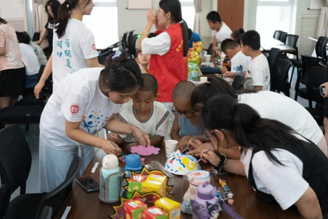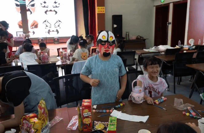活动进入创意无限环节——脸谱绘画。在活动开始前,清徐县青少年宫老师介绍道:脸谱作为中国传统戏剧的重要组成部分,具有悠久的历史和深厚的文化底蕴。它通过色彩和图案的变化,生动地展现了戏曲人物的性格特征和道德伦理特征,是中华传统文化中不可或缺的一部分。在老师和实践队成员的指导与帮助下,青少年们拿起画笔,在空白的脸谱上勾勒出各种色彩和图案。他们或专注地描绘着细腻的线条,或兴奋地交流着各自的创意。不一会儿,一幅幅生动活泼、色彩斑斓的脸谱作品便呈现在了我们面前。这一环节不仅让青少年们体验到了传统艺术的魅力,还进一步加深了他们对中华文化的了解和认同。