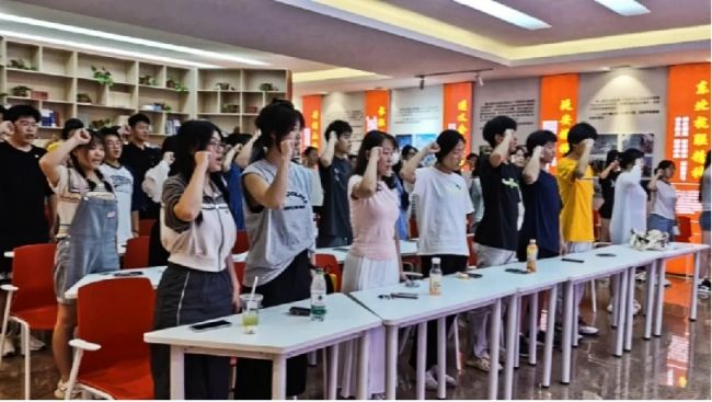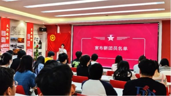 在庄严的国歌声中,新老团员们共同追忆祖国壮丽的历史,进一步激发了每个人的爱国情怀。接着,主持人林美婷宣读新团员名单,并对入团仪式的流程和意义进行了详细介绍。她说,大学入团仪式对团组织和团员个人都具有十分重要的意义,对于团组织来说,新团员的加入为团组织补充了新鲜血液,增强了组织的凝聚力和战斗力;对于新团员个人来说,这标志着他们已经成为团组织的一员,开始了更为广阔的团组织生活,对于他们的成长和发展具有深远的影响。
