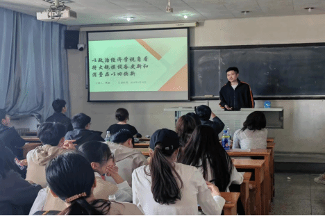 接着,由政治经济学教研室韩英老师指导的20经济学1班的贾赫同学做分享,他刚刚考取北京大学马克思主义学院政治经济学专业硕士研究生。贾赫同学从我国经济现实情况出发,运用《资本论》的原理说明如何以政治经济学视角看待大规模设备更新和消费品以旧换新问题。贾赫同学在讲解过程中还分享了自己学习马克思主义政治经济学的学习方法,一是要重视基本原理,二是要广泛阅读经典文献,三是要密切关注现实经济问题。